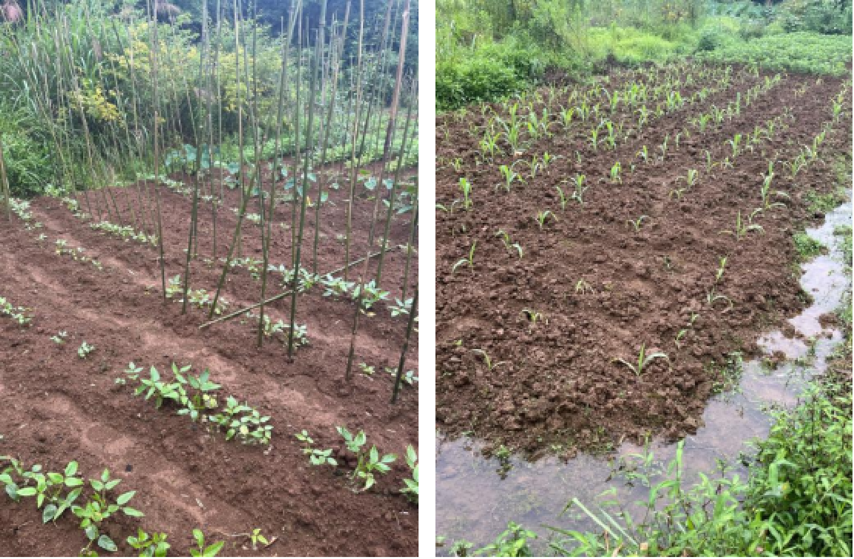 现在可见的火山口很小,直径约为60米,形状大致呈现圆形,边缘较陡,内部较为平坦。进入火山口我们直接能够观察到一片片开垦后的耕地以及种植的农作物。