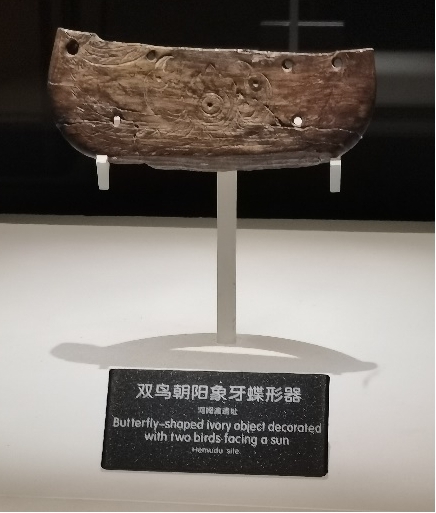 此外,还有河姆渡地区独具特色的干栏式建筑、精致的夹炭陶,纹饰繁复的祭祀器具——双鸟朝阳象牙碟形器。这些无一不彰显着河姆渡曾经灿烂的文明与文化,让我在了解之后深深的叹服于先民的智慧以及中华文明的源远流长。