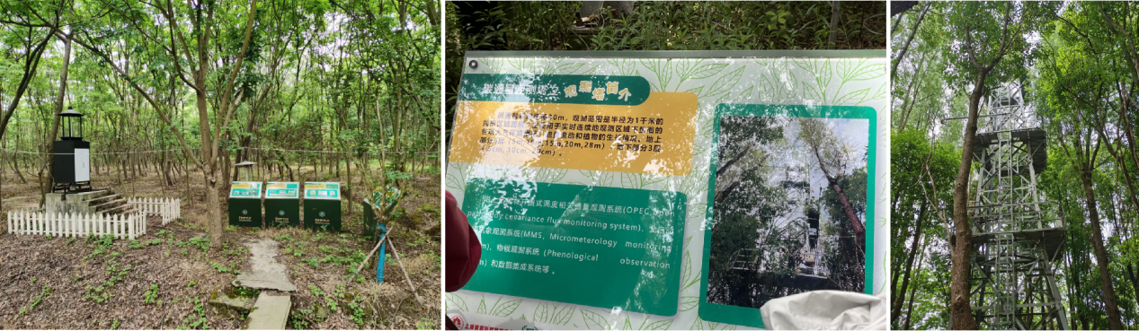 5月20日,同学们来到青浦国家野外站,进行碳通量塔的讲解学习和植被样方调查。刘睿老师首先为大家介绍了碳通量塔观测的相关指标和意义。碳通量观测塔高30米,观测范围是半径1千米的圆形区域面积,主要用于实时连续地观测区域下垫面的各项大气环境指标,能量流动和植物的生长情况。梯度气象观测系统主要包括5层空气温湿度传感器,1层太阳辐射传感器,1层降水传感器,1层光量子传感器,1层气压传感器,3层土壤温度传感器,3层土壤湿度传感器,3层土壤盐分传感器,2层风速传感器和风向传感器。