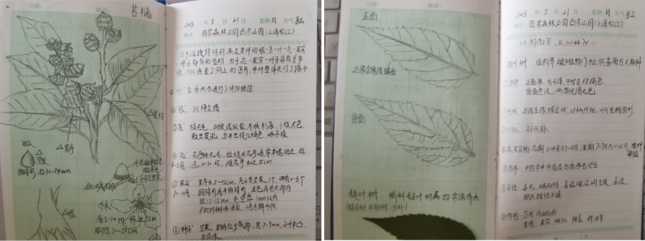 步入园区后,赵敏老师带领同学们参观佘山的植物,并对其种类、习性等进行界定剖析。同学们对分布在佘山的竹子、苔藓、构树、苦槠等植被有了更深入的了解,将理论知识与实践结合了起来。上海佘山以亚热带植被、常绿阔叶林为主。同学们通过水平结构、垂直结构、季相结构对佘山群落进行分析。在实习途中,赵敏老师提出了一些思考与任务,(1)为什么竹子在中国家喻户晓?(2)画出一种植株,根茎叶花果实种子,界门纲目科属种。(3)任意找5片叶子,找出叶脉(平行脉)。(4)植物群落(模式,结构),阳光对植被的作用。
