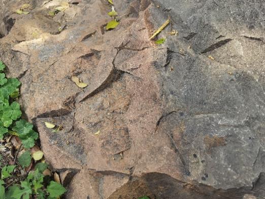 3、地质运动可以形成褶皱构造和断裂构造。褶皱构造常见的为背斜和向斜,断裂构造进一步可分为断层和节理。佘山可见大量节理发育,因构造作用下岩层发生破裂形成。断层和节理需要实地测量它们的走向,倾向与倾角。