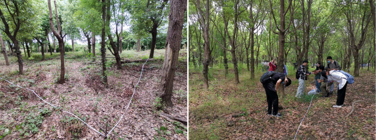 下午在王喆老师的教学讲解后,同学们开始了以小组为单位进行植被群落调查。通过实践大家发现在10m×10m的样地上除了明显常见的乔木外,还有很多之前未曾关注到的灌木和草本植物,有些草本看似相像,但仔细观察却不是同一种类。虽然这些植物在我们的日常生活中几乎都看到过,但平时不会过多关注,更叫不出名字来,因此通过这次植被群落调查,同学们不仅认识了更多植物,了解并实践了科学的调查方法,同时也意识到应该多关注脚下,生活即是地理。