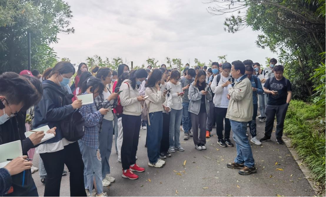 途中,同学们非常幸运遇到了鹦鹉洲观测站的陈老师一行人。陈老师向大家介绍了这个生态公园的作用、特征、代表植物等等。即便交谈时间仅有短暂的十多分钟,同学们依然收获颇多。