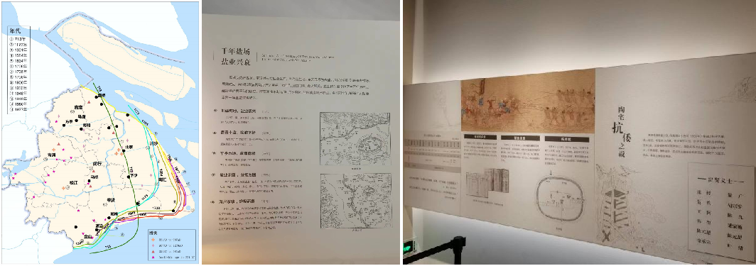 深入展厅的二楼,奉贤历史在这里跃然纸上,千年盐场的兴衰、陶宅抗倭的战争一字一句谱写着奉贤的历史,犹如使观者身临其境亲眼见证了奉贤的变迁。在这里同学们深入上海乡土,退其繁华,以学科视角,观其历史,知其根本,打开了同学们观察上海的新视角,将所学应用于实践,真正做到学以致用,学用结合。