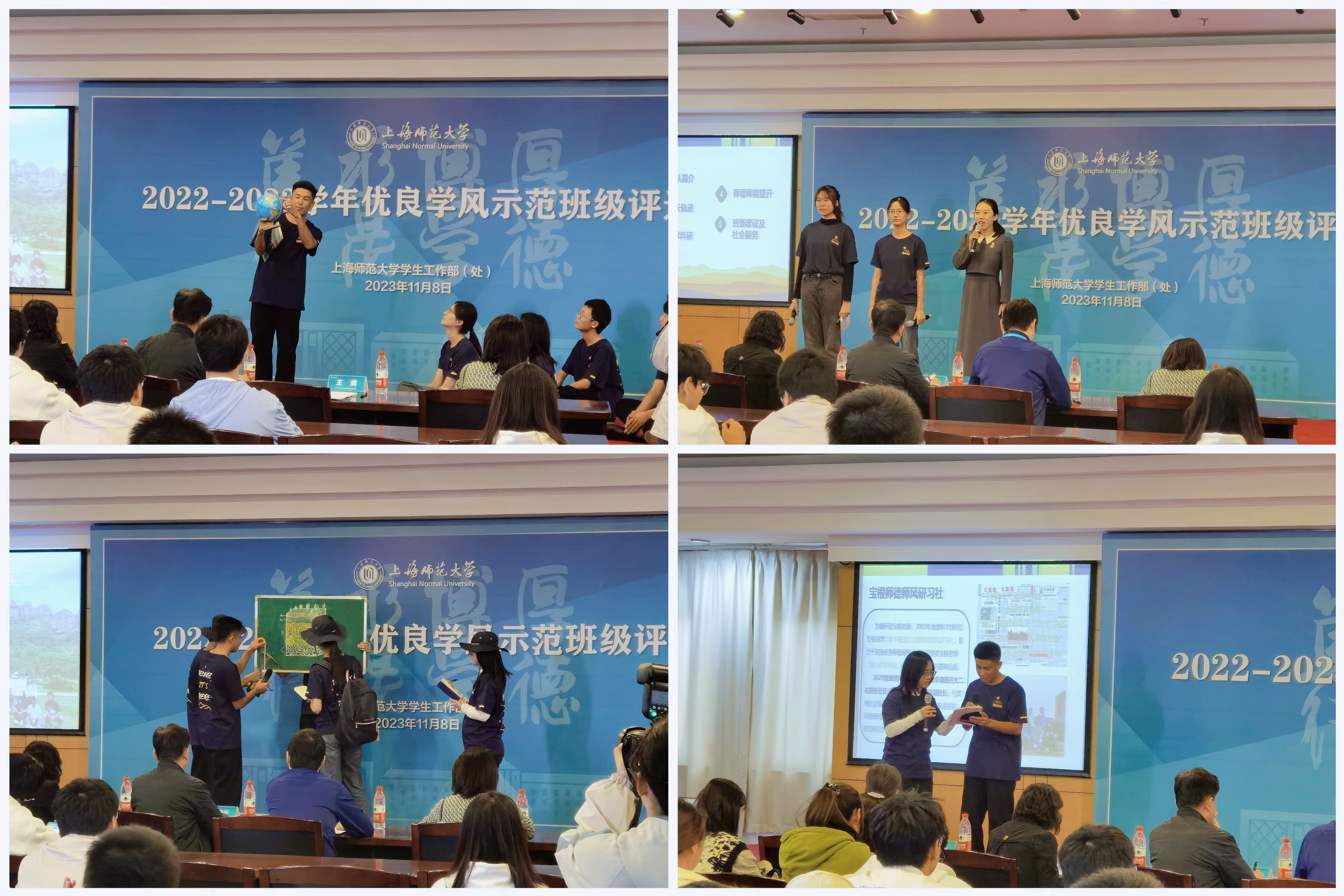 此次评选以班级风采展示的方式进行,在辅导员李嫄老师的带领下,班级成员踊跃参与本次班级评选活动,从团队简介、成长轨迹、学术科研、师德师能提升、班级建设及社会服务这几个角度展示班级风采。其中,在成长轨迹板块,班级成员采用情景剧的方式,演绎了青涩懵懂的地理师范生逐渐成长为有能力、有思考、有视野、有情怀的新时代地理教师的重要过程,生动地展示了班内良好的班级风气与浓厚的学习氛围。