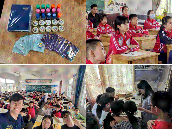 2023年6月,涌旭华老师带领学院支教师生团队赴安徽省六安市进行支教,分别在裕安区苏埠镇卢湾时代小学、裕安区西河口乡福佑希望小学、裕安区西河口乡上海城开希望小学、金安区双河镇九十铺小学、舒城县千人桥小学、舒城县山七镇小河口希望小学、霍邱县新店镇平安希望小学、霍邱县临水镇济丰希望小学和金寨县天堂寨镇后畈小学等开展 “遨游星河”天文小课堂试讲活动,供各校观摩与选择。在试讲过程中,太阳成课程志愿者们通过“三笔画地图”、知识抢答等方式,充分调动学生兴趣,课堂互动气氛热烈,展现出了扎实的专业学识和娴熟的授课技巧,获得活动各方参与人员的一致认可,并收到共青团六安市委员会发来的感谢信。据悉,六安市共有12所希望小学选择了“遨游星河”天文小课堂,本学期累计授课200余课时。