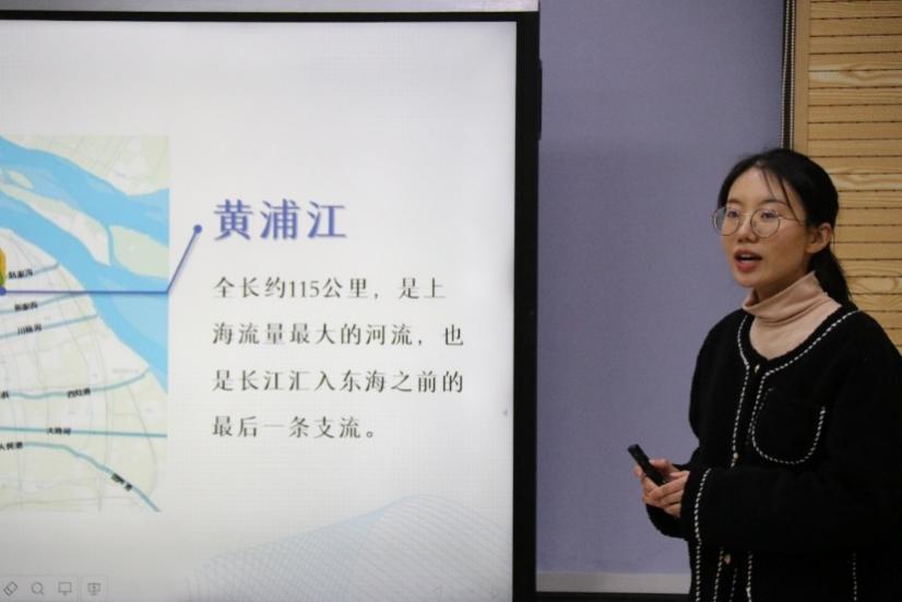 活动伊始,由一段引人入胜的视频向同学们阐述水生态保护的重要性,同时介绍上海市“一江一河”工程背景以及苏州河污染与治理的历史概况。随后,张聪伶老师以苏州河的“前世今生”为线索,带领同学们深刻感受苏州河在工业急速发展的二十世纪所遭受的严重污染,以及这条曾经“鱼虾绝代”的河流如何焕发出新的生机。在回顾苏州河治理历史过程中,同学们也被引导着思考如何平衡保护与发展的关系。