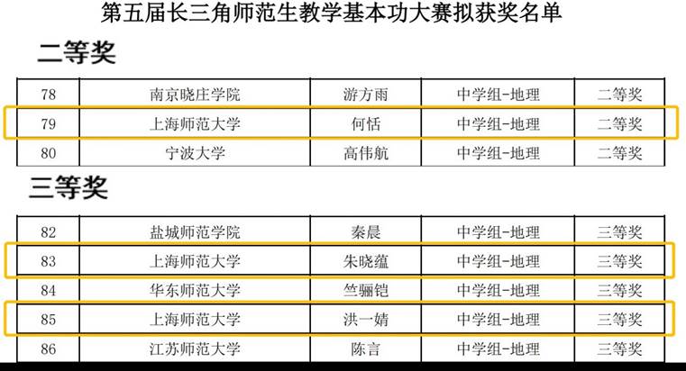 20231219日,第五届长三角师范院校教师智慧教学大赛以及长三角师范生教学基本功大赛在安徽师范大学落下帷幕,学院副院长陈浮副教授应邀担任大赛评委。经过激烈比拼,太阳成师生全部获奖,满载而归,充分展现了太阳成师生的教学能力和职业风采。地理学系李亚龙老师获第五届长三角师 范院校教师智慧教学大赛理工组二等奖;刘兰、王丹老师指导的地理科学(师范)专业2020级何恬同学获中学地理组二等奖;燕亚菲、缪圣、柳云龙老师指导的地理科学(师范)专业2020级朱晓蕴同学和缪圣、叶程程、柳云龙老师指导的地理科学(师范)专业2021级洪一婧同学分别获中学地理组三等奖。