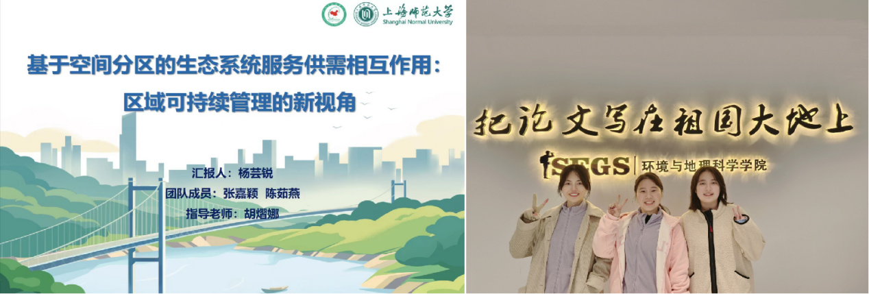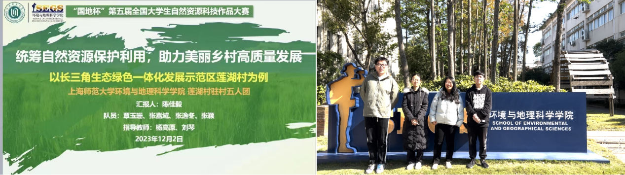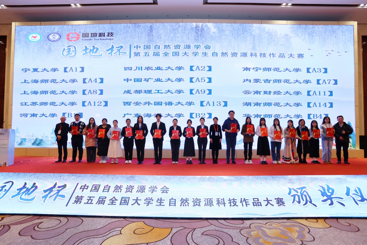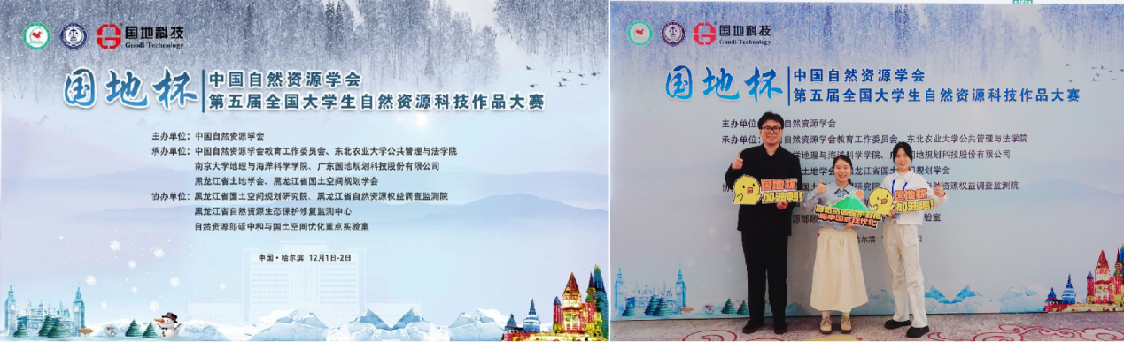 2023年12月1日至2日,中国自然资源学会“国地杯”第五届全国大学生自然资源科技作品大赛决赛在哈尔滨举办。在决赛中,由太阳成杨高原和刘琴老师指导,2020级人文地理与城乡规划专业陈佳毅、覃玉珊、张嘉域、张逸冬、张颖等5位同学完成的作品《统筹自然资源保护利用,助力美丽乡村高质量发展——以长三角生态绿色一体化发展示范区莲湖村为例》,以及由太阳成胡熠娜老师指导,2021级地理科学(师范)专业杨芸锐、张嘉颖、陈茹燕等3位同学完成的作品《基于空间分区的生态系统服务供需相互作用:区域可持续管理的新视角》,均在大赛中斩获二等奖。