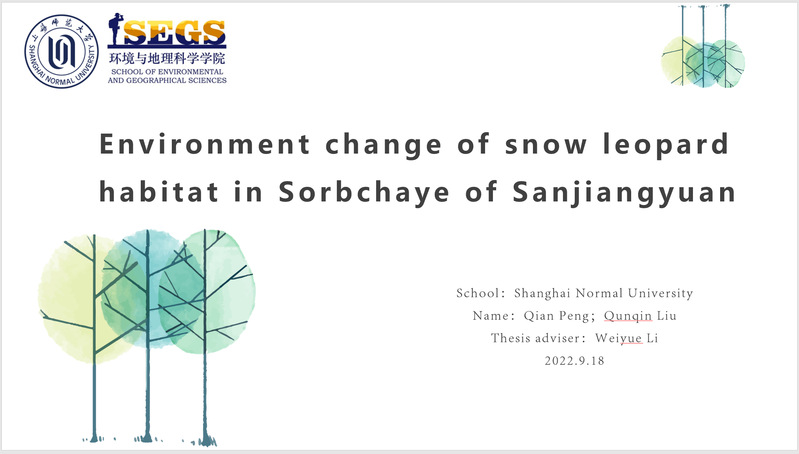 《基于供需簇的长三角城市群生态系统服务权衡与协同综合分析》是基于多源大数据从生态系统服务供给-需求簇的视角综合分析了长江三角洲城市群生态系统服务的权衡与协同关系。研究结果显示,从生态系统服务供需平衡视角而言“土地共享”(Land sharing)或许是实现长三角城市群可持续发展的绝佳模式。该项目受到学院国家自然科学基金重点项目《遥感产品与大数据支持下的中国城市群可持续评价研究》(NO. 41730642)的资助,以队长钟真为第一作者的相关比赛成果也于近日同步发表于SSCI期刊《Land》(2022年 IF = 3.905)。《Environment change of snow leopard habitat in Sorbchaye of Sanjiangyuan》以三江源国家索布查叶区域为例,结合多源遥感数据和GIS空间分析技术,基于生境适宜性评分方法绘制了研究区雪豹栖息地地图,并结合实地巡护和红外相机捕捉结果对栖息地范围进行验证。研究结果显示,雪豹栖息地随着景观类型变化向高海拔和低海拔区域扩散,同时由于自然栖息地明显的迁移现象,人类与旗舰物种之间的冲突愈加激烈,现有国家公园边界范围已无法满足旗舰物种的生态保护需求。相关成果同样于2022年发表在《Land》期刊。
