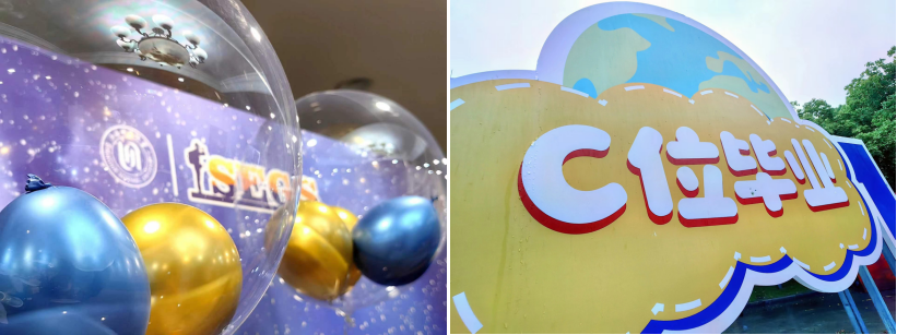 毕业生们身着学院服在背景板前打卡留念,留下的不仅是青春的剪影,更是智慧和汗水的见证。点滴回忆,涓滴入海,未来的日子里,在校期间的回忆将一路相伴,成为毕业生们宝贵的精神财富。