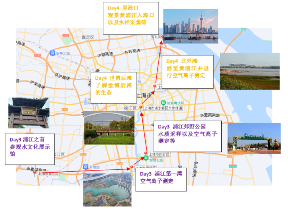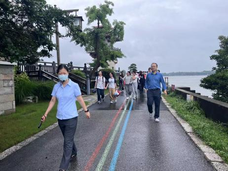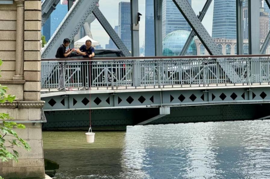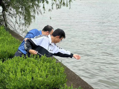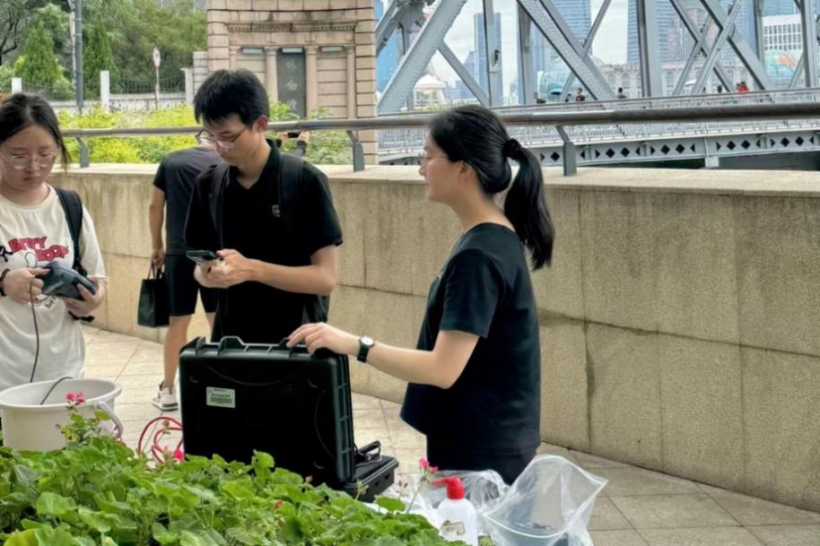 随后,大家一路北上来到北外滩,沿着黄浦江前进,在孙伟华老师和陈琳琳老师的指导下,顺利完成所有项目的检测。