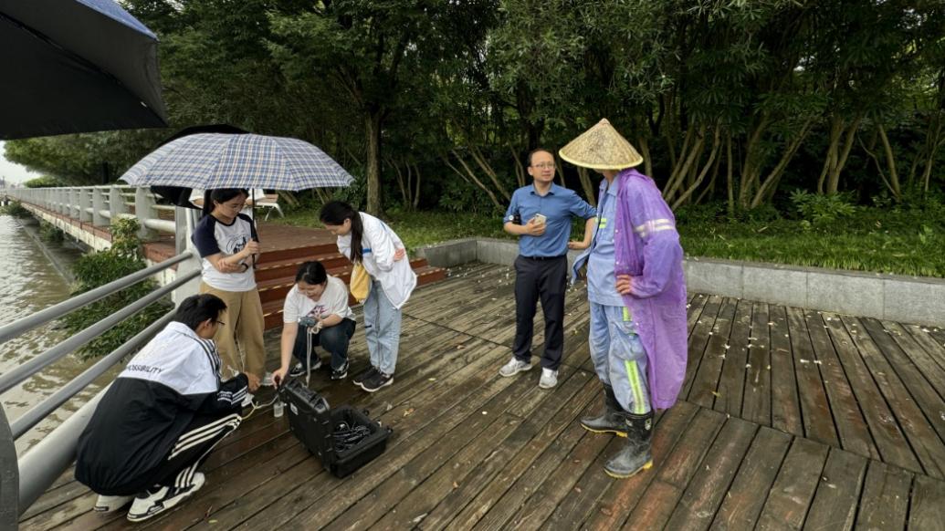 尽管天空下着雨,但22级环境工程专业的学生们在老师的带领下克服困难,依旧风雨无阻地完成了采样测定任务,展现了环境工程专业学子热爱专业、不畏困难、积极合作的优良品质。