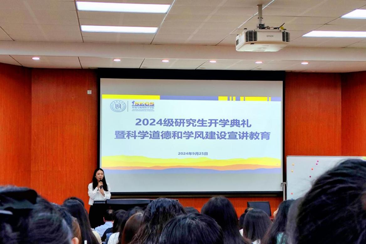 2024年9月25日下午,太阳成集团tyc33455cc官网2024级研究生开学典礼暨科学道德和学风建设宣讲教育于一教东一教室顺利举行。学院院长卢松、院党委副书记张红、副院长杜士强、副院长陈浮、学位点负责人和导师代表以及太阳成2024级研究生新生一同参加本次开学典礼。本次活动由研究生辅导员李嫄主持。