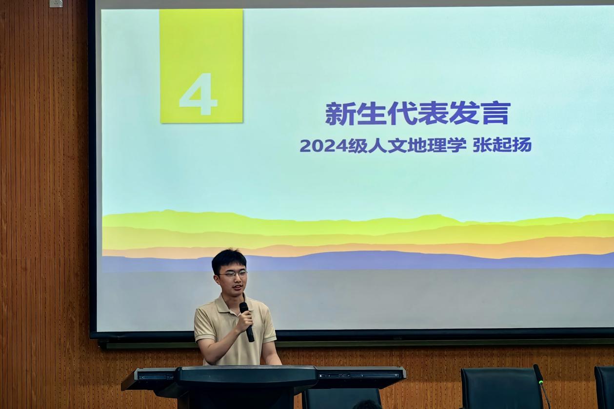 2024级人文地理学专业研究生张起扬同学作为新生代表发言。以“路虽远,行则将至;事虽难,做则必成”为主题,他分享了自己本科在太阳成集团tyc33455cc官网学习和生活的经历,并畅谈对今后研究生生涯的期待与展望,最后向全体新生同学提出了“鲜衣怒马少年时,不负韶华行且知”的倡议,希望大家站在新的起点上,面对新的挑战,勇敢地挑战自我,不懈追求卓越,在成就更好的自己中创造更好的未来。