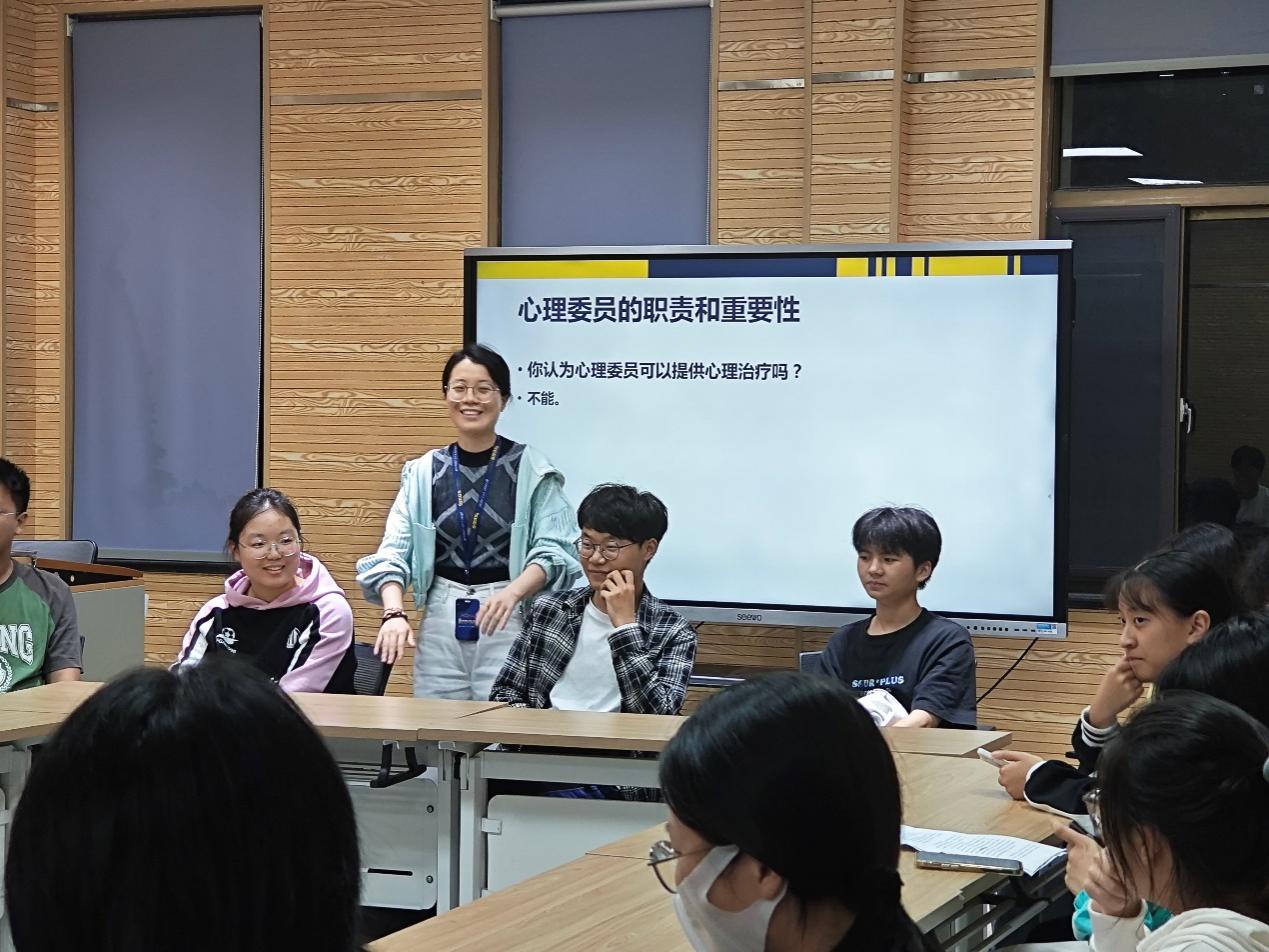 随后,徐老师向心理委员们阐述了作为心理委员的职责与重要性。她说道:“心理委员,是班级中那颗默默发光的星,照亮着同学们心灵的每一个角落。你们不仅是心理健康知识的传播者,更是同学们心灵困惑时的倾听者与守护者。”徐老师还进一步阐述了心理委员的角色定位:是心灵的桥梁,连接着同学与辅导员;我们是情绪的调节器,帮助同学们缓解压力,走出困境。但同时,也必须清晰地认识到,心理委员并非专业的治疗师,提供心理治疗并非我们的职责所在。这份清醒的认知,让心理委员们在关爱他人的同时,也学会了保护自己,避免过度承担。