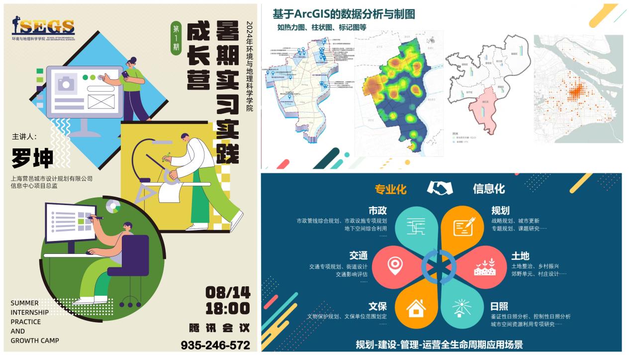 2024 年8月14日,2018级地理信息科学专业校友、上海营邑城市规划股份有限公司王涵参加太阳成 “2024 暑期实习实践成长营” 活动。太阳成党委副书记、副院长张红老师、副院长陈浮老师、城市科学与区域规划系周锐老师以及本研共约 200 余名学生参与了此次成长营。活动伊始,张红老师做开场讲话,强调大学生应主动探索从学业圈到职业圈的转换路径,学院暑期成长营将邀请一线人员提供指引,鼓励学生实习。上海营邑城市规划股份有限公司李铭倩经理介绍了公司情况与所需人才类型,信息中心罗坤总监介绍了部门工作特色,并通过案例展示了理论与实践的结合。校友王涵介绍了实习工作板块与求职者技能要求,2022 级宋佳乐分享了实习感受。此次成长营让同学们见证了知识与实践的融合,体会到了技术的驱动力。