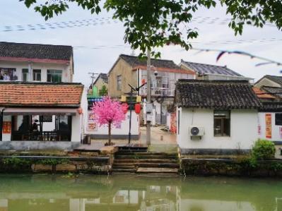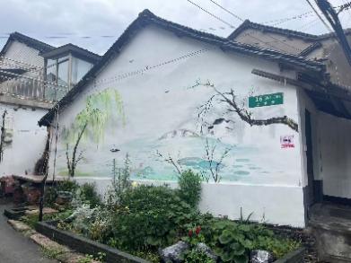 在前往金泽水库之前,同学们首先游览了金泽古镇。大家发现,金泽古镇的商业化程度较低,沿河的街道上商铺稀少,街头白墙上还可见一些富有特色的手绘艺术,展现了古镇独特的韵味。