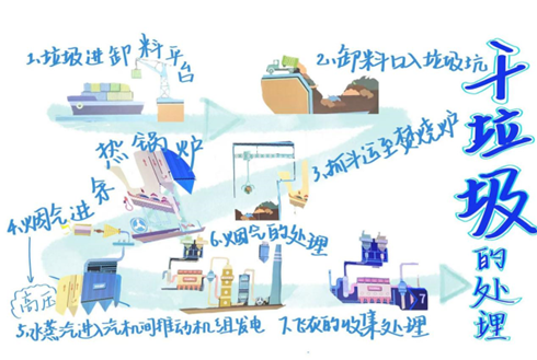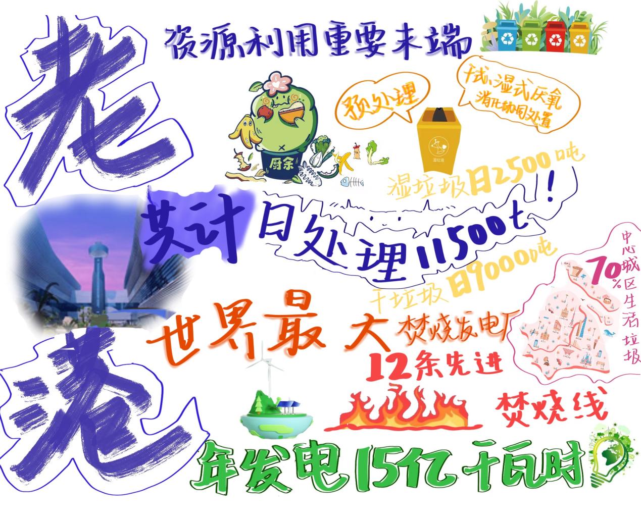 实习第四天,同学们前往老港垃圾填埋场参观学习。步入展厅,讲解员逐步讲解城市垃圾的处理过程。展厅中也形象地用投影、立体模型、电子屏模拟出垃圾风选过程、填埋场下层结构、填埋气收集系统、垃圾焚烧工艺、焚烧气体排放处理过程、渗滤液处理体系等各种在垃圾处理过程中的重要过程与器械,使得同学们对垃圾处理的流程与方法有了一个更直观的认识。