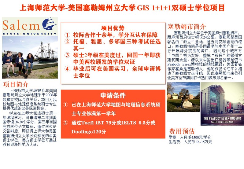 上师大-美国塞勒姆州立大学地图与地理信息系统1+1+1双硕士学位