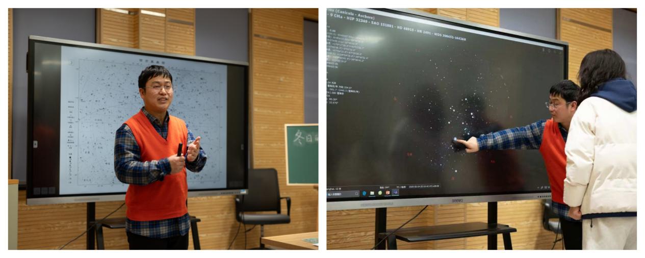 活动中,陈宇新老师以“冬季星空的故事”为主题,深入浅出地讲解了天球、赤经赤纬、黄道十二宫等专业知识,结合生动的星座传说,将复杂的天文知识娓娓道来,激发了师生对宇宙探索的热情。