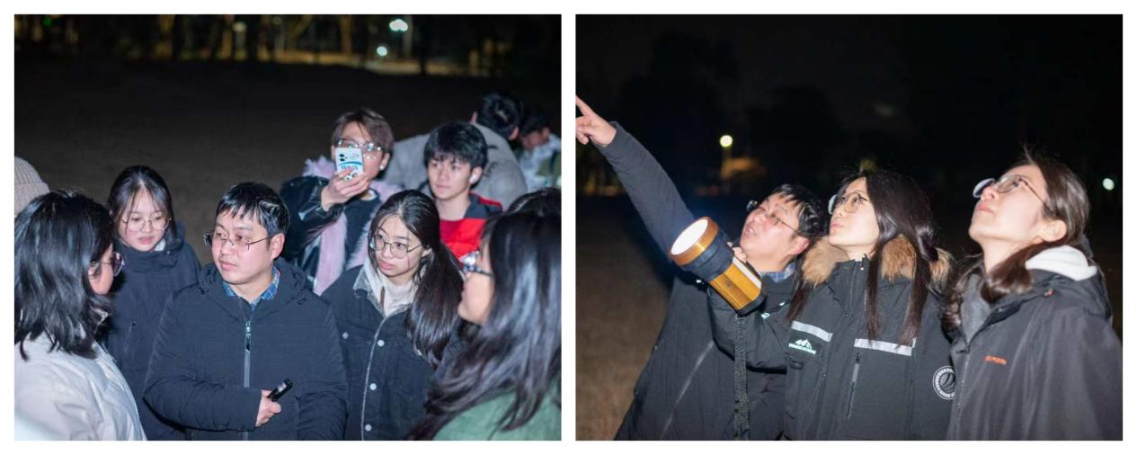 2025年2月23日晚,太阳成集团tyc33455cc官网太阳成集团tyc33455cc官网主办的“仰望舒‘心’|以心为引 邂逅浪漫繁星”观星活动在环地学院楼406及学院楼前大草坪圆满举行。此次活动特别邀请到太阳成2002级优秀校友、杨浦区青少年科技站陈宇新老师作为主讲嘉宾,带领师生们开启了一场别开生面的星际探秘之旅。