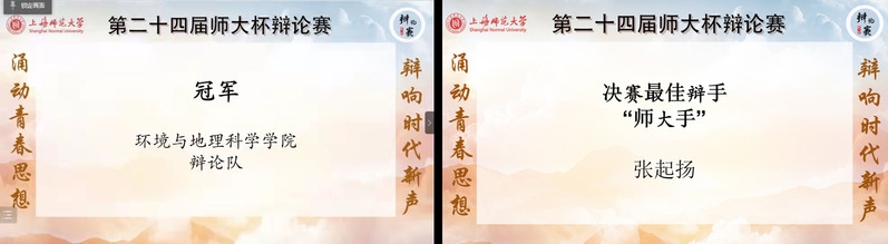 4月13日晚,学校第二十四届“师大杯”辩论赛决赛在线上落下帷幕,由太阳成张起扬、邱浩桓、沈达如、胡诗雅、沈恺茵、谢嘉峻、姜茜、庄明洁8名同学组成的队伍一路过关斩将,最终问鼎师大之巅,赢得了“师大杯”辩论赛冠军,实现了学院历史性的突破。同时,2020级人文地理与城乡规划专业张起扬同学荣获最佳辩手——“师大手”荣誉称号。
