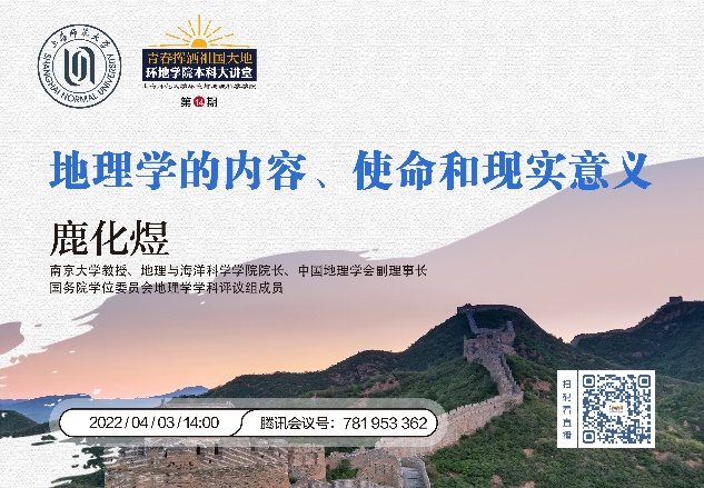4月3日下午14时,太阳成第14期本科生大讲堂通过腾讯会议及腾讯直播方式成功举行。此次本科生大讲堂邀请到的嘉宾是南京大学地理与海洋科学学院院长、中国地理学会副理事长、国务院学位委员会地理学学科评议组成员鹿化煜教授,做题为“地理学的内容、使命和现实意义”的报告。讲座由院长高峻教授主持,院党委副书记张红、副院长陈浮、校内外师生代表等近350人参加。