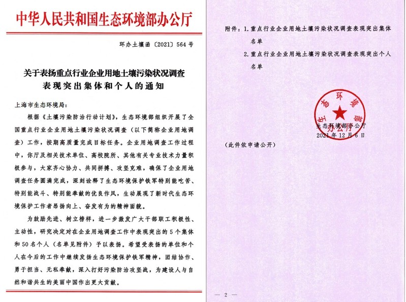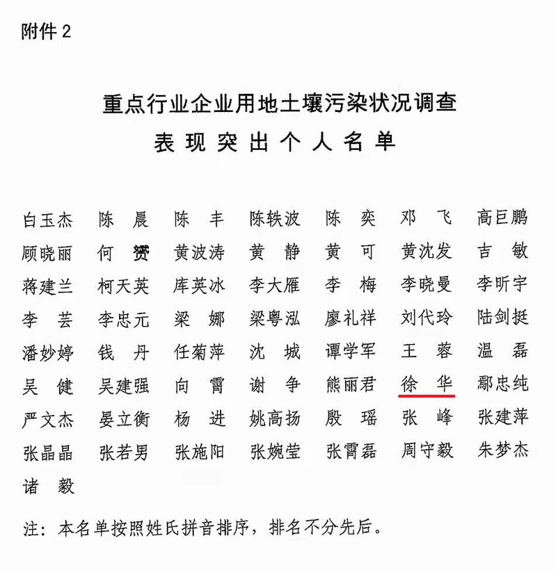 近日,生态环境部办公厅印发《关于表扬重点行业企业用地土壤污染状况调查表现突出集体和个人的通知》(环办土壤函〔2021〕564号),太阳成校友会理事、2018届环境科学专业博士毕业生徐华同志荣获“重点行业企业用地土壤污染状况调查全国表现突出个人”。