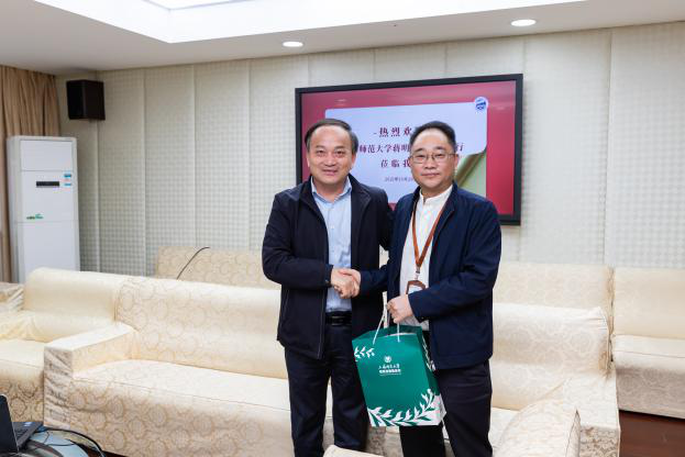 走进会议室,何校长向来访者们简要介绍了闵中的发展历史、办学成果和办学特色。蒋校长借《大山深处走来的上海校长》一文,赞叹何校长的年轻有为。正入文章里所言,他是高等学府中的不懈攀登者、推行“生涯教育”的探索者。是真实的情感与细节的温度让他在从教生涯里游刃有余,培养了一批批杰出的青年才子。随后,与会人员一同观看了《实者存慧 知者无涯》短片,更加直观地了解闵中的发展。学校具有校本特色的“生涯与发展”教育模式以“完善学生人格、促进学生可持续发展”为目标,借助科学的生涯测试以及运用系统生涯教育与实践方法,引导学生增强自我和人生发展的认识与理解,促进学生在成长过程中学会选择、主动适应变化和开展生涯规划。这是何校长的“制胜法宝”,让学生在发展中接纳与完善自我,取得成长的“胜利”。最后,何校长、蒋校长互赠文创礼物,表达对彼此感谢。