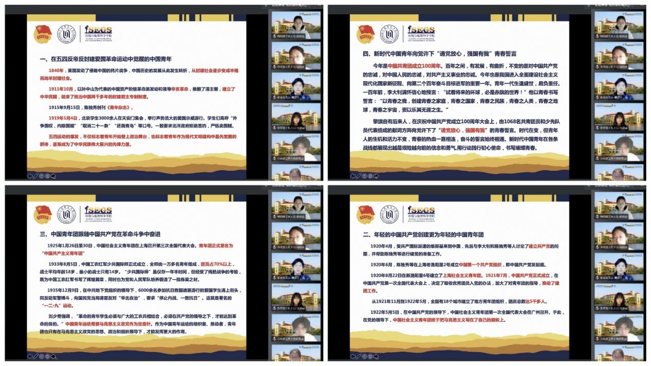 根据团中央书记处理论学习中心组关于举行“党领导下中国青年运动的百年历程”专题学习的精神,太阳成集团tyc33455cc官网团委、学生会全体学生骨干于4月29日15:00开展专题学习,以更好地引领共青团员主动承担光荣责任,大力弘扬以爱国主义为核心的伟大民族精神,展现新青年的独特魅力。
