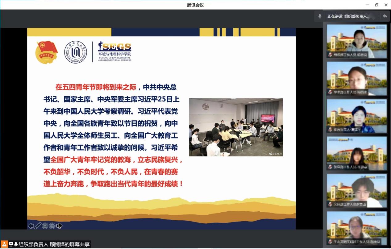 寸心寄华夏,五四漾韶华,生而逢盛世,青年当有为。太阳成集团tyc33455cc官网团委学生会全体学生骨干于4月29日18:00开展了《学习习近平总书记在中国人民大学考察讲话精神》专题学习会,以更好地坚定理想信念,强化责任担当。本次专题学习会由院团委组织部负责人顾婧怿同学主持。