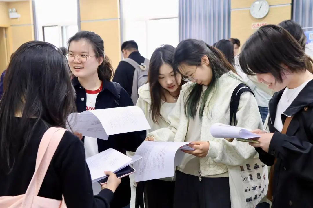招聘会现场气氛热烈,秩序井然。企业展位前,学生们手持精心准备的简历,踊跃咨询,积极与企业招聘人员交流,详细了解企业的发展前景、岗位职责等相关信息,并结合自身优势和意向积极选择心仪的单位投递简历。
