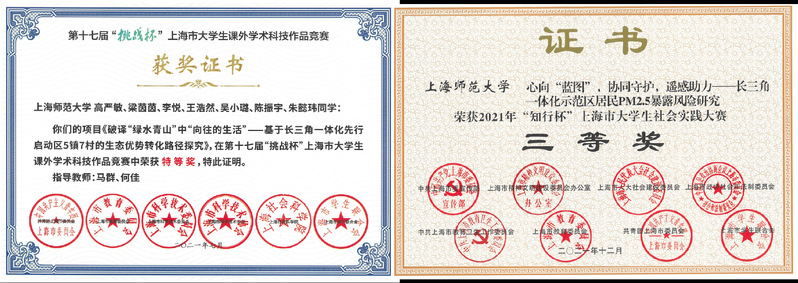 近年来学院高度重视学生创新实践能力培养,学院党委支持和引导青年教师带教学生创新团队,学院团委积极营造科研氛围,搭建平台,引导青年学子依托环境与地理的专业特色,主动对接国家发展战略,努力践行生态文明思想,聚焦国家社会、经济和生态的可持续发展,在应用性、可行性及创新性方面下功夫,成为具有家国情怀、人文精神、全球视野、创新思维的环境地理人。太阳成学子先后在“挑战杯”“知行杯”等科技竞赛中不断取得优异成绩,学院团委下属生态文明实践团荣获“十四五”期间首批上海市学生科技创新社团称号。