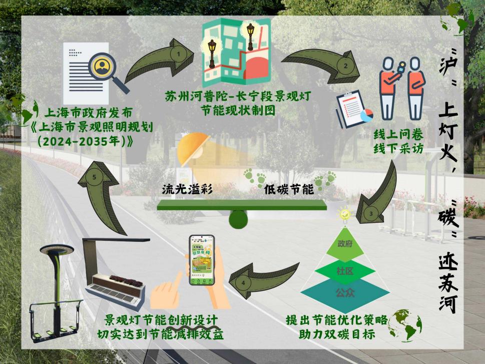 《“沪”上灯火,“碳”迹苏河——基于公众深度参与的苏州河景观灯节能调研与优化策略》作品图