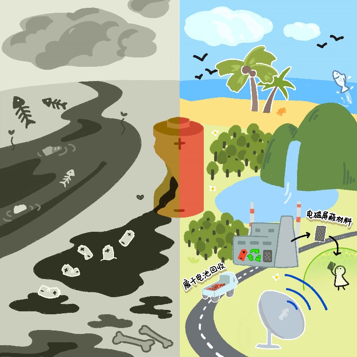 《“固”若金山、集废为宝——Mn-Zn废干电池制备高效电磁波辐射吸收材料之开发》作品图