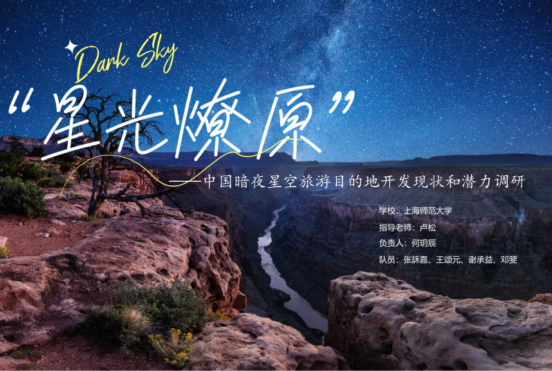 《星光燎原-中国暗夜星空旅游目的地开发现状和潜力调研》结合“光污染”“天文热”的社会现实和“乡村振兴”的战略需求,从理论和实践层面入手,依托ArcGIS软件分析技术,将线上调研与线下调研相结合,从暗夜星空旅游的特征入手,探索哪里能开发、怎么开发等问题,尝试构建旅游开发潜力评价指标,并提出相关建议。该作品有助于进一步提升公众治理光污染的意识,推动国内天文科普教育的持续发展,为星空特色的乡村旅游指引方向。
