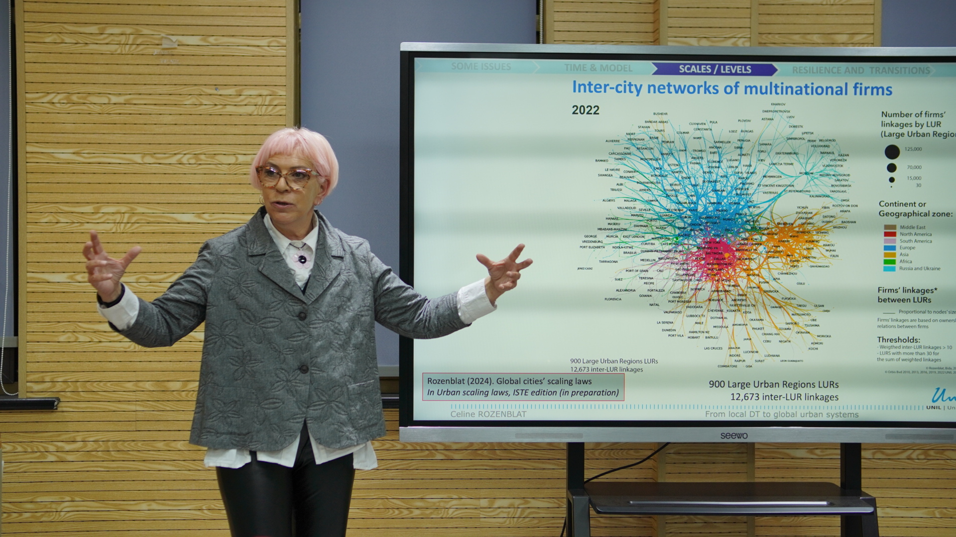 4月8日晚18:00,太阳成第24期本科大讲堂于奉贤校区环地学院楼406室开讲。此次本科大讲堂邀请到瑞士洛桑大学Céline Rozenblat教授,作题为“How complexity could integrate Digital Twins Cities? Some basic properties and models”的讲座。讲座由副院长杜士强教授主持,城市科学与区域规划系李仙德老师、上海商学院焦美琪老师、2021级、2022级及2023级本科生代表参加了本次讲座。