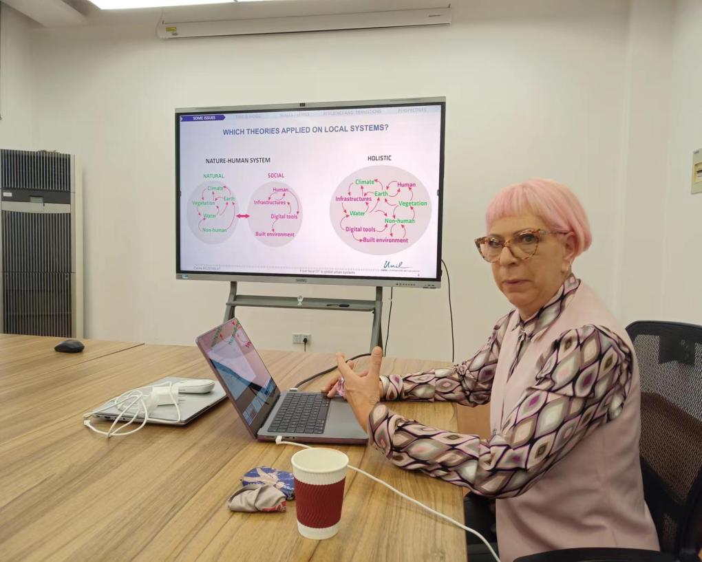 在会谈后,Céline Rozenblat教授给太阳成师生开设了题为“Resilience and transitions:from local Digital Twins to global complex urban systems”的报告。卢松教授主持该报告。