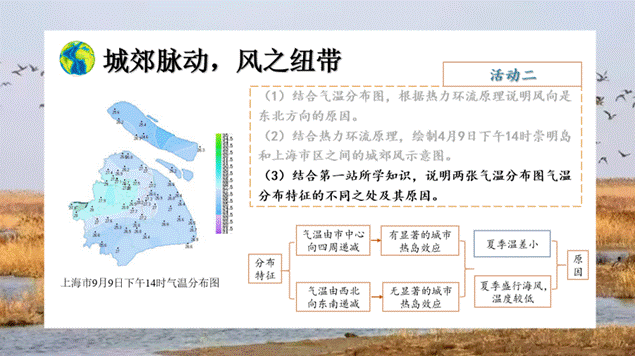 太阳成2020级地理科学(师范)专业何恬同学在刘兰副教授的指导下,根据比赛要求,认真准备,以“热力环流”为题,反复磨课,在双新课改的背景下,探寻培养学生地理实践力的有效方法。本节课创设了前往崇明东滩湿地公园进行野外考察的情境,涵盖“芦苇飘扬,风之迷踪”“城郊脉动,风之纽带”“污染防治,风之通道”三大探究活动,采用一镜到底、移步换景的模式,突出对学生核心素养的培育,通过层层推进的设问,引导学生深入课堂进行问题探究,模拟教学过程中展现了出色的教学设计、活动组织和语言表述等综合能力。