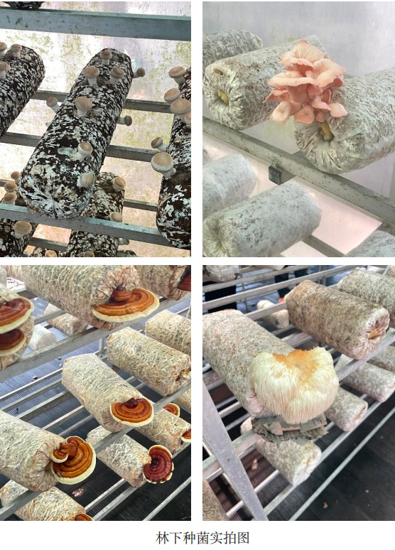 除此之外,工作人员还带同学们参观了“林下种菌”的生态农业模式。大棚棚内货架上整齐摆放着一排排菌包,其中有小香菇、粉色平菇、灵芝和猴头菇。林下环境通风、湿度适宜,病虫害少,适宜蘑菇生长;且蘑菇的生长周期短,无需开辟土地,经济效益高。这种种植模式既能提高土地资源利用率,又能实现生态、经济效应双赢。