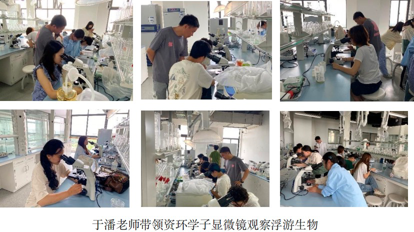 6月25日,同学们进入实验室分别开展土壤养分分析和浮游植物观察。在1004实验室的烘箱与907实验室的显微镜前,小组成员分工协作。土壤样品在烘干后过筛后进行养分分析;各组同学用显微镜观察到了假丝微囊藻、角甲藻与放射微囊藻等多种浮游植物,最终汇集成阳澄湖与金鸡湖的浮游植物的多样性图谱。