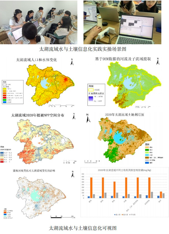 6月26日,同学们在学院楼406开展了太湖流域水体与土壤信息化的实践。同学们基于遥感和GIS技术,利用Landsat数据与mNDWI指数,对2000、2020年太湖流域水域空间识别,分析水体面积及破碎度、连通性等景观格局变化,深入探究建设用地扩张、人口增长、降水等对水体的驱动影响。同时,结合实测土壤数据与中国土壤有机质数据集,剖析不同土地利用类型下土壤有机质、氮、磷、钾等主要参数差异,为太湖流域生态保护与资源管理提供数据支撑与科学依据,助力流域生态可持续发展研究迈向新阶。