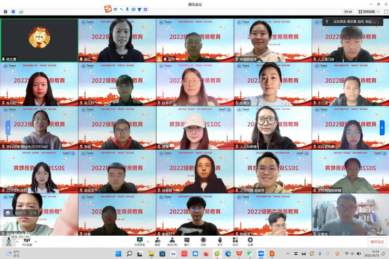 2022年10月15日下午,太阳成集团tyc33455cc官网举行了主题为“强党性、明使命、党员先行”的2022级研究生新生党员专题教育。会议通过腾讯会议在线举行,由学院党委副书记张红老师主讲,辅导员赵杰老师及学院全体2022级研究生新生党员参会。