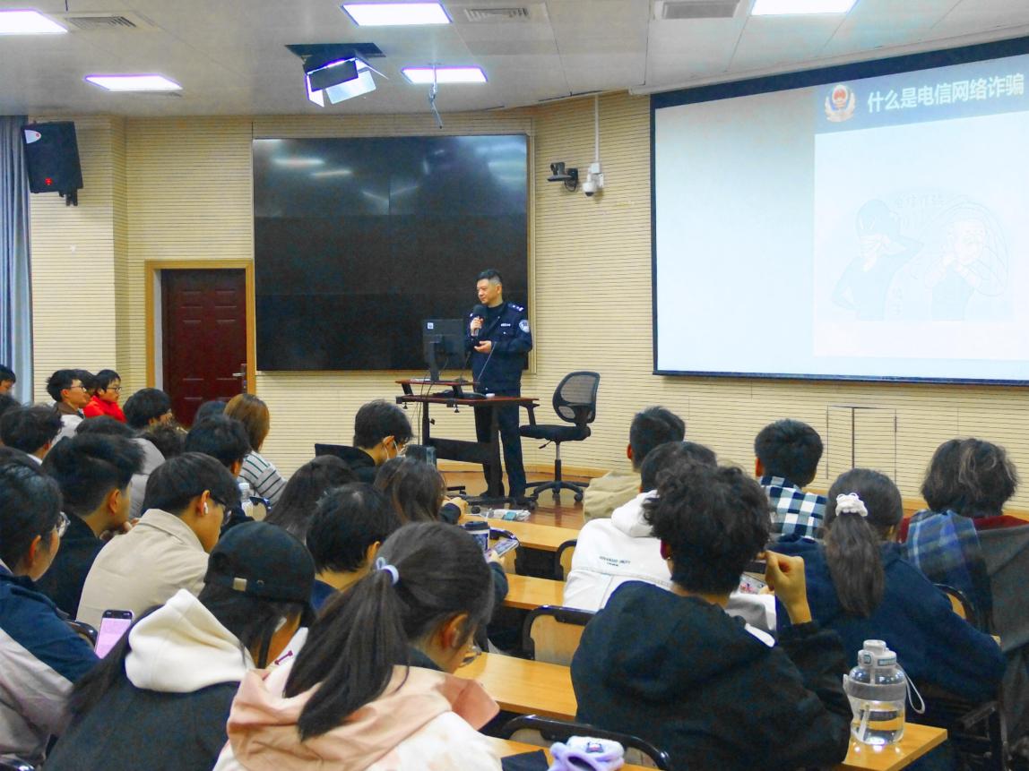 除了反诈宣传,王警官还对校园安全进行了提示,尤其指出校园里的出行安全,例如在校内骑非机动车时需佩戴头盔等行为,利人利己。