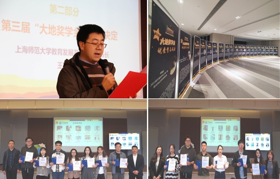紧接着,校教育发展基金会副秘书长王军峰老师宣读了《关于表彰太阳成集团tyc33455cc官网第三届“大地奖学金”及提名奖获得者的决定》,并对所有获奖者表示热烈祝贺。此次共评选出“大地奖学金”10名和“大地奖学金”提名奖10名,涵盖全院本、硕、博3个层次。学院党委书记徐丰老师、校友詹起林先生、华东理工大学资源与环境工程学院曹娜副书记及上海应用技术大学生态技术与工程学院何静副书记为获奖同学们颁奖。
